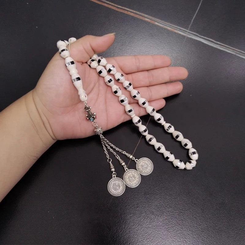 Profitez de la beauté de l'artisanat authentique avec notre Tasbih fait main. Chaque perle est minutieusement façonnée à partir d'os de chameau naturel, offrant un accessoire de mode unique et élégant. Léger et confortable à porter, ce Tasbih est non seulement stylé, mais également durable et de haute qualité, en faisant un incontournable pour votre collection.