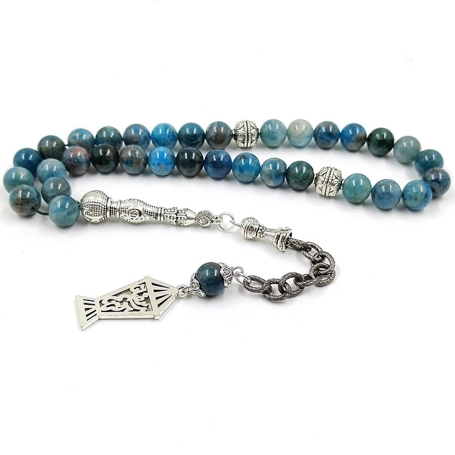 Découvrez l'excellence de la pierre d'apatite naturelle dans ce magnifique chapelet islamique