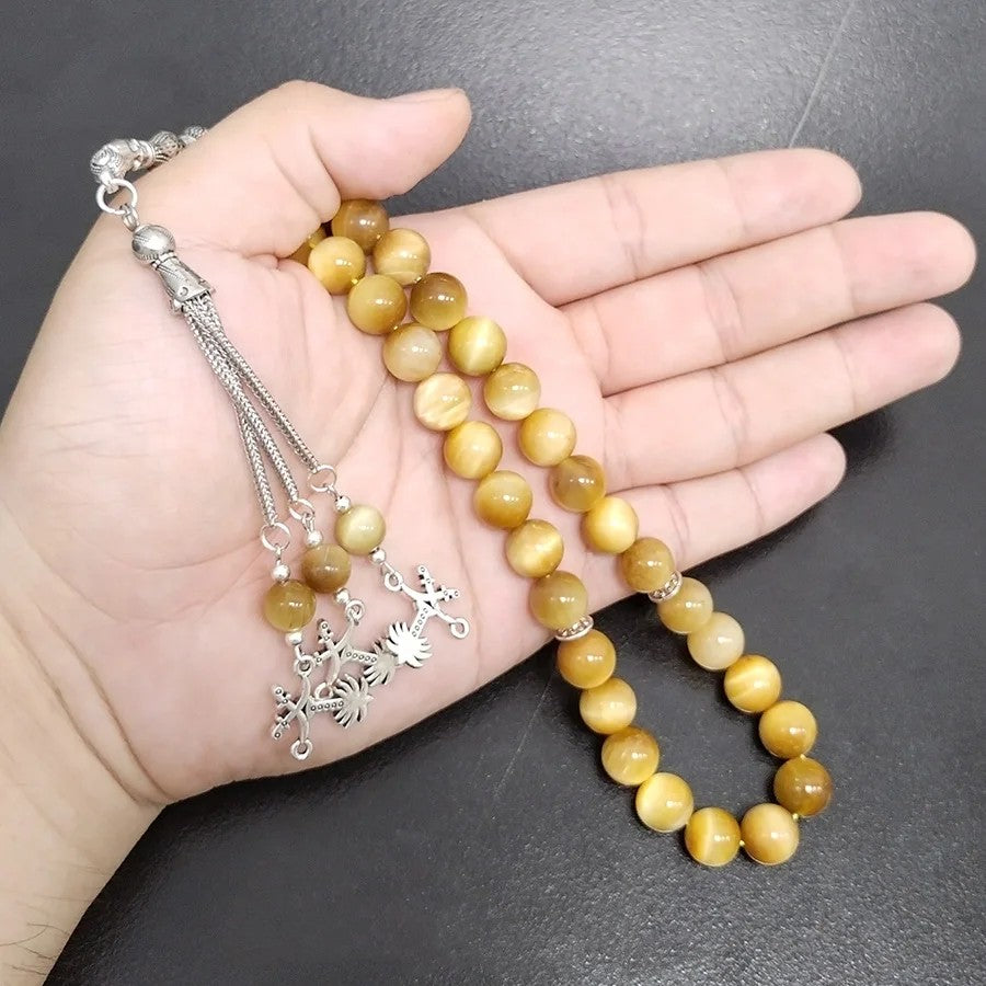 Tasbih chapelet - Pierre d'oeil de tigre jaune naturelle